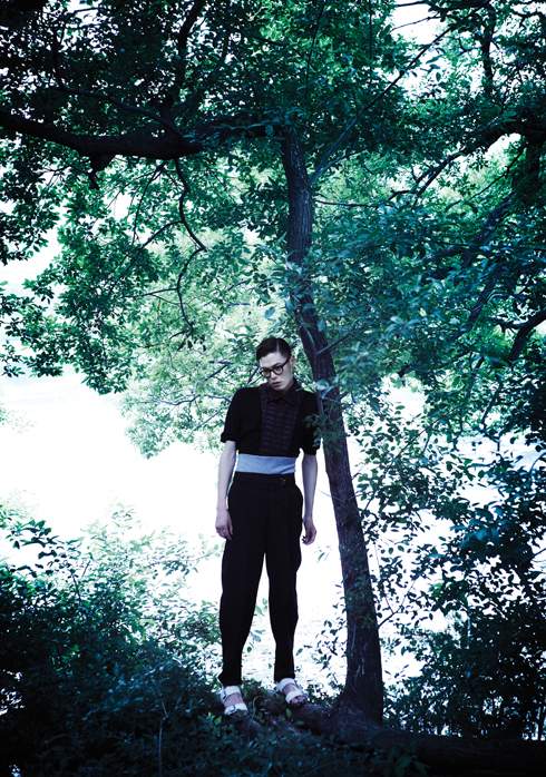 블랙 카디건 1백만원대, 셔츠 70만원대, 팬츠 1백만원대, 그레이 커머밴드 80만원대 모두 YSL. 화이트 샌들 1백8만원 루이 비통. 블랙 안경 40만원대 뷰 디씨 by 옵티칼 W.