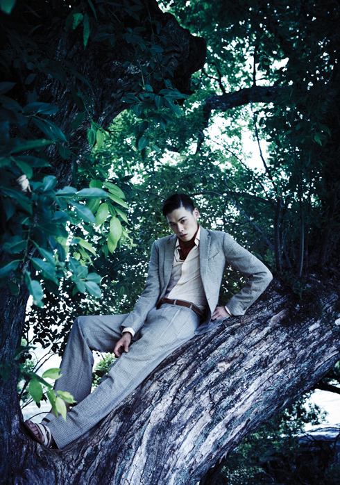 (남자) 재킷 2백만원대, 팬츠 70만원대, 그레이 니트 가격 미정, 스카프 20만원대 모두 구찌. 아이보리 슈즈 1백35만원대 발리.