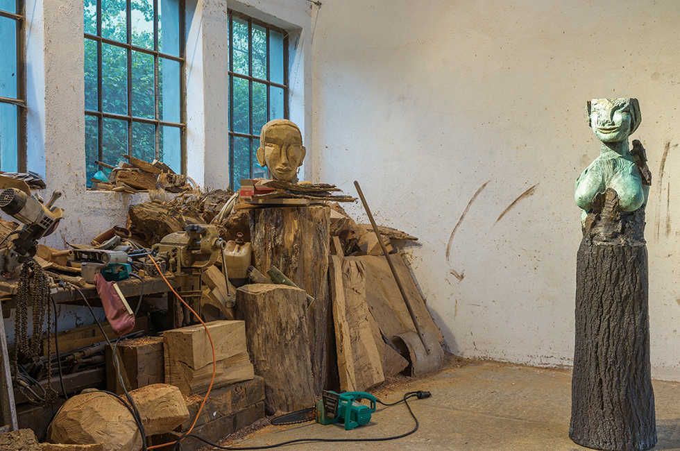 그의 소속 갤러리 대표이자 친구인 보데 갤러리의 클라우스 보데는 클링에의 창조 철학에 대해 대상을 응시하고(seeing), 내적 깊이를 꿰뚫고자 성찰하고(reflecting), 자신만의 조형 언어로 뭔가를 더하면서(adding), 탈바꿈시키는(transforming) 수순으로 이어진다고 설명했다. 뭘 새롭게 더하려는 걸까? “대상을 관찰할 때 제 눈에 보이는 그 무언가를요.” 순간, 아는 만큼 보인다는 평범한 진리가 뇌리를 스쳤다. 마침 다양한 인간 군상이 한데 모여 있는 듯한 클링에의 작업장 한편에 놓여 있는, 아직은 형체가 불분명한 커다란 나무 상태의 작업을 가리키면서 그에게 물었다. “그럼, 저기에선 뭐가 보였나요?” 그러자 그는 진지한 어조로, 그러나 살짝 장난스레 답했다. “여인이죠. 아니, 그게 안 보였단 말인가요?” 그러고 보니 그건 그의 뮤즈와도 같은 ‘다프네(Daphne, 그리스 신화에 나오는 ‘강의 신’ 페네이오스의 딸로, 자신을 사랑하는 아폴로에게서 도망치다가 월계수로 모습을 바꾼다)’ 시리즈를 닮았다. 함부로 가늠하기 힘든 애틋한 아름다움이 느껴지는 클링에의 다프네를 미완성 상태로 볼 수 있다는 사실만으로도 이 여정은 충만했다.