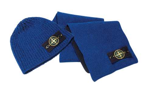 3 블루 컬러 비니 17만5천원, 머플러 25만4천원 모두 스톤아일랜드.