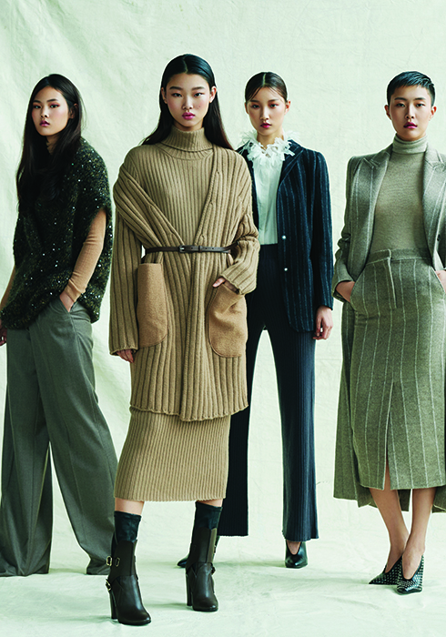 니트 베스트 가격 미정 브루넬로 쿠치넬리. 베이지 터틀넥 톱, 와이드 팬츠 모두 가격 미정 막스마라.