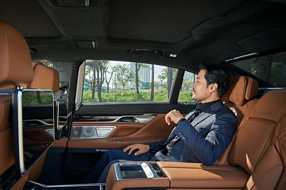 2 비행기 퍼스트 클래스처럼 넓고 편안한 뉴 7 시리즈 뒷좌석.