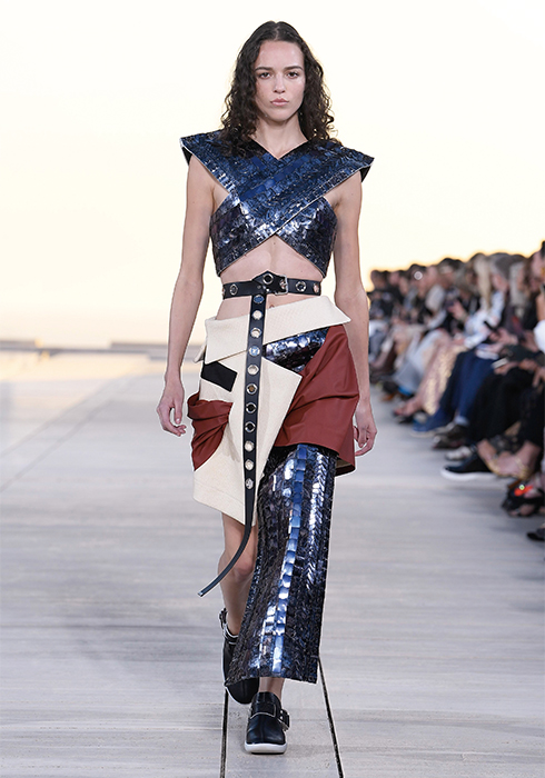 석양이 붉게 물들기 시작하는 지평선을 등지고 신비스러운 분위기의 강인한 여전사들이 힘 있게 런웨이를 행진한다. 상상력을 자극하는 옷과 빛, 선이 만드는 태양과 건축물의 완벽한 조화. 미국 캘리포니아의 샌디에이고에서 시간과 공간을 초월한 쇼가 시작됐다. 니콜라 제스키에르의 2023 루이 비통 여성 크루즈 컬렉션.