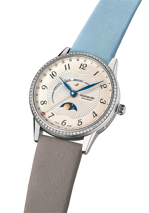2014년 처음 출시한 몽블랑을 대표하는 여성 워치, ‘보헴(Bohe`me)’ 컬렉션은 등장만으로도 센세이셔널한 반응을 불러일으켰다. 우아함을 담은 매력적인 디자인, 유니크한 다이얼 배치는 기계식 시계를 선호하는 여성은 물론 보석을 사랑하고 몽블랑 브랜드의 가치를 인정하는 여성들에게도 큰 호응을 얻었다. 클래식한 기요셰 패턴과 몽블랑의 스타 로고에서 영감을 받은 핸즈, 매혹적인 플로럴 아라비아숫자 인덱스가 어우러져 세계적인 성공을 거두게 된 것. 1백 년의 시간을 확인할 수 있는 퍼페추얼 캘린더 모델까지 보헴 컬렉션에 추가해 하이엔드 워치메이킹의 가치를 확실히 각인시켰다. 컬렉션을 론칭한 이듬해인 2015년 선보인 ‘문 가든’과 ‘데이 앤 나잇’은 아름다운 것은 물론 고성능 컴플리케이션 모델이라는 점에서 더 높은 가치를 지닌 제품. 특히 가장 각광받은 모델은 빌레레에 위치한 몽블랑 메종의 무브먼트 & 이노베이션 엑설런스 센터에서 자체 개발한 고성능 컴플리케이션 무브먼트를 탑재한 ‘몽블랑 보헴 문 가든’. 형태를 바꾸는 달에 각기 다른 이름을 붙여 시계 다이얼에서 볼 수 있는 창의적인 기능을 더했다. 다이얼 중앙에 있는 초승달 모양의 창에 달의 이름이 나타나고, 6시 방향의 문페이즈를 통해 달의 움직임을 확인할 수 있다. 이 독특한 매뉴팩처 컴플리케이션의 기능은 개별 코렉터로 간단하게 조정할 수 있고, 아이스 문(Ice Moon), 오크 문(Oak Moon) 등으로 명명한 12개 달의 이름이 시계 뒤쪽에 원형으로 새겨져 있는 것도 매력적이다. 보헴 문 가든에 이어 보다 실용적인 기능을 갖춘 ‘보헴 데이 앤 나잇’은 낮과 밤, 날짜를 표시해 비즈니스 워치를 원하는 여성들에게 제격이다. 시간에 따라 일출과 일몰을 정확하게 세팅할 수 있고, 72개의 웨셀턴 다이아몬드로 베젤을 풀 세팅해 더욱 클래식하다.