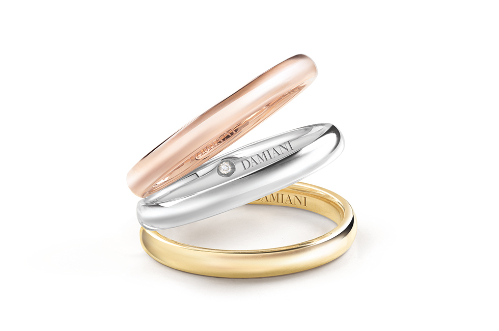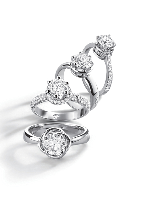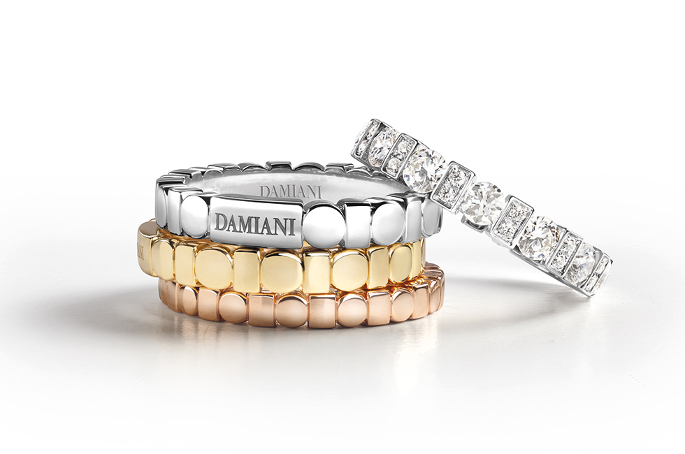 플래티넘 또는 화이트 골드에 다이아몬드를 세팅한 다미아니 솔리테어 링으로, 컬렉션명은 위부터 차례대로 벨 에포크, 미누, 미누 풀 파베, 보치올로.