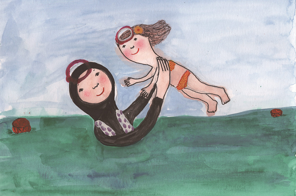 한국과의 이러한 인연은 2017년 <엄마는 해녀입니다>라는 동화책 출간으로 이어진다. 이 책은 우연한 계기에서 비롯됐다. 몇 년 전 작업 때문에 중국 상하이에 머물던 당시 우연히 호텔에 비치돼 있던 여행 잡지에서 제주 해녀 사진을 보고 깊은 인상을 받은 그는, 다음에 한국을 찾을 때 제주를 꼭 방문하겠다고 결심한다. 그리고 실제로 제주에 와서 직접 해녀를 보고 스케치와 드로잉을 했는데, 이 작품들이 인터뷰와 함께 지역 신문에 실렸다. 다큐멘터리 영화 <물숨>의 고희영 감독이 이 기사를 접하고는 바르셀로나에 있는 에바 알머슨 스튜디오로 메일을 보냈다. 그로부터 몇 달 뒤 에바 알머슨은 고희영 감독의 초청으로 제주 우도에서 함께 시간을 보냈고, 고희영 감독이 글을 쓰고 에바 알머슨이 그림을 그린 <엄마는 해녀입니다>가 세상에 나오게 됐다. 에바 알머슨은 우도에서 보낸 시간을 “지금까지 겪어본 것 중 가장 감동적인 경험이었다”라고 말할 정도로 소중히 여긴다. 강인하고 독립적이면서도 공동체 의식이 강한 제주 해녀를 통해 인간의 가장 고귀한 가치를 발견했으며, 그들과 자연의 특별한 관계성에서도 큰 감명을 받았다고.