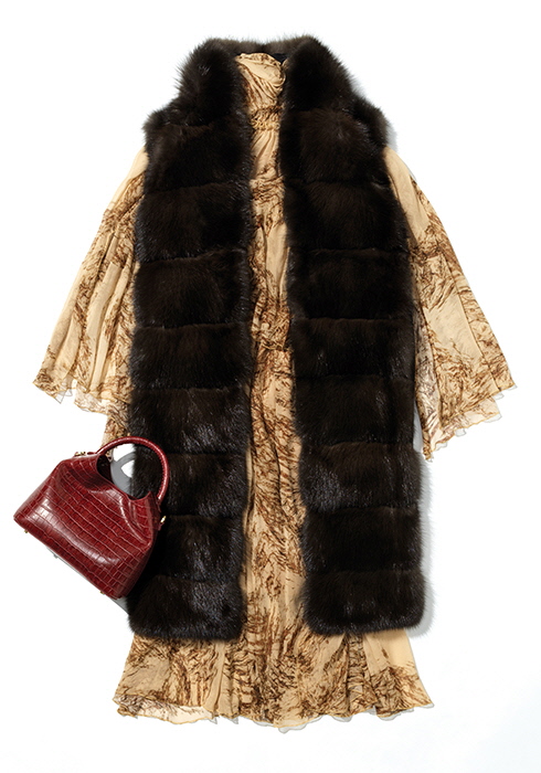 전면에 최고급 세이블을 더해 보온성, 활동성, 스타일을 두루 갖춘 울 혼방 캐시미어 소재 롱 블랙 베스트 만조니24 by 폼 스튜디오. 이국적인 낙화(pyrography) 프린트와 자연스러운 드레이프가 아름다운 롱 슬리브 시폰 드레스 네헤라 by 폼 스튜디오. 크로커다일 엠보싱 처리한 카프 레더 소재로 화려한 무드를 강조한 와인 컬러 토트백 엘미 by 폼 스튜디오. 문의 02-3449-5359