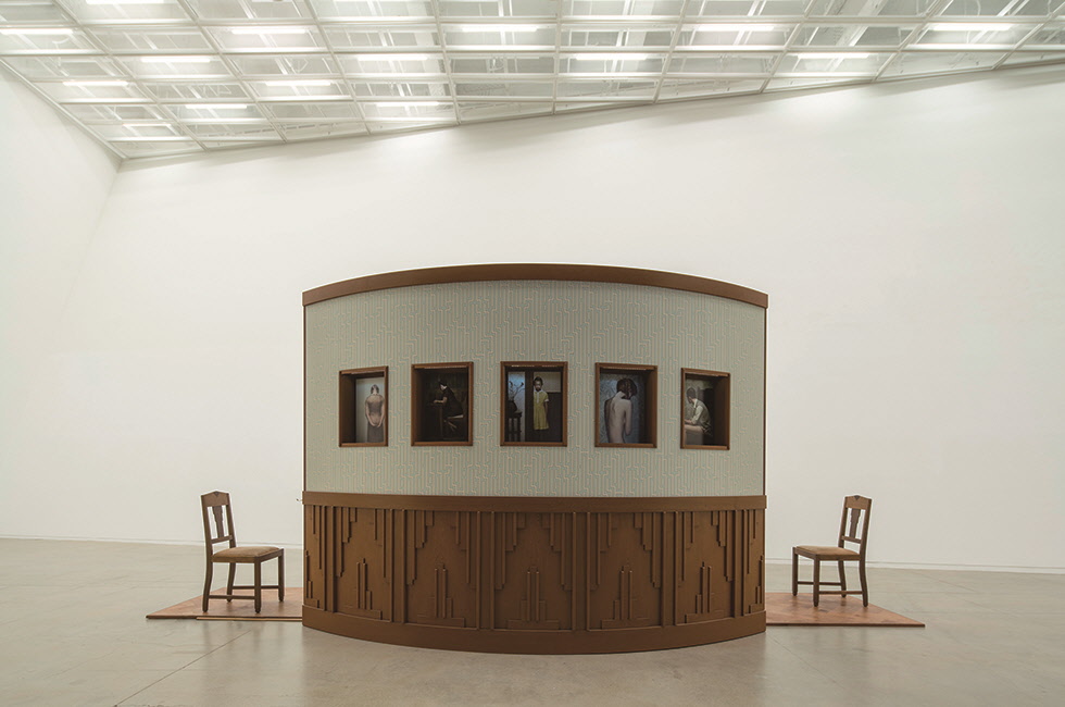 #<어윈 올라프: 완전한 순간-불완전한 세계>_수원시립미술관 “나는 작품의 심미적 측면에서 관람객을 매혹하는 걸 좋아한다.” 독특한 사진 미학을 선사하는 네덜란드 작가 어윈 올라프(Erwin Olaf)는 이런 얘기를 할 자격이 분명히 있다. 특히 대개 무표정하게 등장하는 그의 초상 작품은 우연히 눈길을 주게 되면 자기도 모르게 계속 고정하게 만드는 힘을 지녔다. 사진에 관해 많은 글을 남긴 미술비평가 존 버거는 ‘배치의 예술’인 회화와 달리, 형태 사이의 관계를 보여주는 ‘구도’는 사진의 영역에 ‘깊이’ 들어오기 힘들다고 했는데, 어윈 올라프의 사진은 꽤 회화적인 면모가 있다. 촬영의 피사체인 인물부터 스튜디오 배경에 이르기까지 ‘판’을 짜고 세세하게 연출하는 ‘감독’ 같은 그의 방식 때문이기도 할 것이다. 언뜻 그림 같지만 그저 정적인 회화의 느낌은 아니다. 가만히 응시하고 있자면 화면에서 뛰쳐나와 인상적인 행동을 취할 듯한 느낌을 줄 만큼 인간의 극적인 감정을 서사적으로 연출했다. 일촉즉발의 상황 속 고요한 긴장감이 어려 있는 영화의 한 장면처럼. “관람객이 여기에 걸려들어 그 매력에 빠져들면, 그때 작품의 진짜 메시지로 그들을 단번에 사로잡아버리는 것이다.” 작가의 말처럼 절로 눈길을 잡아끄는 인물들의 순간과 상황을 포장한 매혹적인 이미지는 그가 자주 다루는 ‘인간 존재의 연약함’이라는 주제 의식을 향하고 있다. 수원시립미술관에서 진행 중인 어윈 올라프 전시는 40여 년간의 작품 활동을 망라하는 대규모 전시다. 작가에게 영감을 줬던 렘브란트 등 거장들의 회화와 연결시킨 네덜란드 국립미술관 레이크스 뮤지엄의 2019년 전시 <12인의 거장과 어윈 올라프>를 소개한 특별 섹션을 비롯해 작가 본인이 피사체로 등장해 코로나19 사태로 혼란에 빠진 동시대인의 심경을 표현한 사진, 그리고 영상과 설치 작품까지 ‘발품’이 아깝지 않은 구성을 갖췄다.