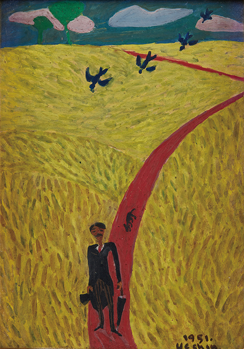 1 ‘자화상’(1951), 종이에 유화물감, 14.8 × 10.8cm, 개인 소장. 장욱진의 고향인 충남 연기군(지금의 세종시)에 머물던 시기에 그린 작품. 그는 이 시기 ‘미친 듯이 그리고 또 그렸다’고 전한다.