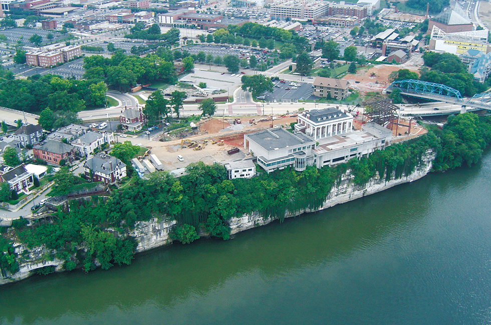 채터누가의 미술가협회에서는 네이티브 아메리칸 언어에서 유래한 ‘솟아오른 바위’라는 의미의 지명에 어울리는 미술관이 필요하다고 생각했다. 그들은 테네시강이 내려다보이는 절벽 위에 서 있는 팩슨 헌터(Faxon Hunter) 맨션을 미술관으로 개조하면 상징적인 공간이 될 것이라 판단했다. 협회는 이 맨션의 소유주인 벤우드 재단(Benwood Foundation)을 찾아가 맨션을 기부해달라고 요청했다.