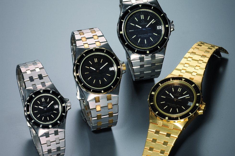 1932년 오메가 최초의, 그리고 세계 최초의 다이버 워치인 마린(Marine)은 지금 다시 보아도 혁명 그 자체다. 완전히 분리되는 2개의 케이스는 외부 케이스와 안쪽의 다이얼 케이스가 꼭 맞도록 설계되었다. 또 바깥쪽 케이스에는 스크래치를 방지하는 인공 사파이어 글라스를 사용했는데, 기존 글라스보다 강도가 10배 이상 강했다. 물이 닿아도 녹슬지 않는 스테이브라이트 스틸 소재와 골드 소재 두 가지 버전으로 제작된 이 시계의 스트랩은 실용성을 최우선으로 여기는 오메가의 정신에 따라 물개가죽(seal skin)으로 제작했다. 당연히 바닷물에도 끄떡없는 소재다. 잠수용 수트 위에도 착용 가능 하도록 길이를 조절할 수 있는 접이식 잠금장치까지, 목적에 딱 맞는 시계를 제작하는 오메가의 정신은 이 초기 모델에도 그대로 담겨 있다. 어떤 시계든 완벽한 테스트를 거치는 오메가의 고집은 이때도 예외가 아니었다. 1936년 마린 모델 3개를 다양한 실험군으로 테스트했는데, 이 테스트에서 85℃로 가열한 물에 4분 동안, 5℃의 제네바 호수 73m 수심에서 30분 동안 제품을 담가두었고, 그 결과는 성공적이었다. 다이빙을 위한 최초의 산소 탱크를 개발한 다이빙의 개척자 이브 르 프리외(Yves Le Prieur)가 오메가의 마린 모델을 착용했고, 1936년 해저 연구가 윌리엄 비브(William Beebe) 또한 태평양 해협 14m 수심에서 이 시계를 착용하며 전문성을 인정받았다. 칼리버 19.4 SOB T2를 탑재한 마린은 세계에서 가장 방수가 잘되는 손목시계였고, 까르띠에와 티파니에서 재판매되기도 했다(당시에는 시계 전문 브랜드의 모델을 구입해 외관만 수정해 판매하는 경우가 많았다). 이러한 노력이 빛을 발해 1948년 드디어 완벽한 다이버 워치인 씨마스터 컬렉션이 드디어 얼굴을 드러냈다. 안정적인 방수 기능을 갖춘 씨마스터 컬렉션이 상업적인 성공을 거둔 것은 당연한 결과다. 경쟁사에서 오메가에 견줄 만큼 퀄리티 높은 제품을 만들어내지 못했기 때문이다. 최초의 씨마스터 워치 디자인은 다이버 워치라기보다는 방수 기능을 갖춘 클래식한 워치처럼 보인다. 하지만 오메가는 보다 전문적인 기능을 탑재하길 원했고, 1957년 이러한 문제점을 개선한 씨마스터 300을 출시해 다이버 워치의 새 시대를 열었다. 깊은 수심에서도 쉽게 읽을 수 있는 야광 다이얼과 잠수 시간을 측정할 수 있는 회전 베젤을 적용한 후 오메가의 명성은 높아졌다. 긴 연구 끝에 탄생한 씨마스터 300은 항구 설비 보수나 수심 파이프 부설 등의 험한 작업을 위한 필수품이 되었다.