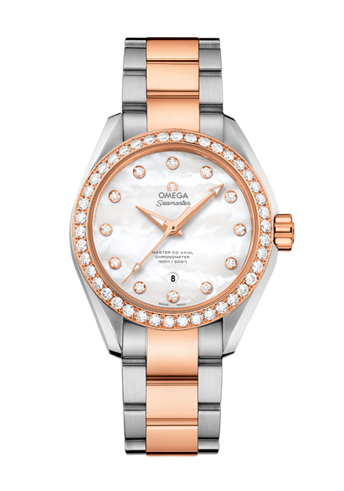 13 다이아몬드를 세팅한 여성용 씨마스터 아쿠아 테라 마스터 코-액시얼 레이디.