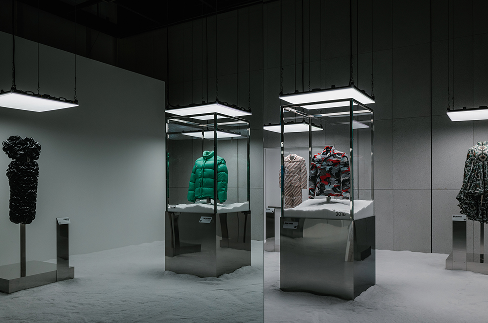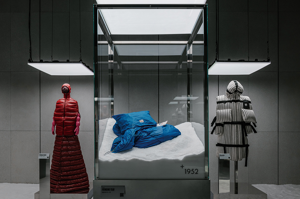 몽클레르의 70년 역사를 기념하기 위해 10월 5일 뉴욕에서 시작된 ‘비범한 탐험’이 런던을 걸쳐 서울에 상륙했다. 런던에서는 프리즈 아트 페어(Frieze Art Fair)와 같은 기간 진행되었고, 중국에서는 가상현실 전시를 통해 디지털로 감상할 수 있도록 했다. 그런 다음 도쿄를 마지막으로 이벤트를 마무리할 예정. 몽클레르 하면 설산을 빼놓을 수 없는데, 성수동 디뮤지엄 전시장의 문을 열자마자 설원을 그대로 옮겨놓은 것처럼 새하얀 인공 눈이 소복이 쌓여 있었다. 그리고 서울 관람객들의 기대에 부응이라도 하듯 서사가 담긴 디자인, 영상과 소리, 안개까지, 자연에서 느낄 수 있는 요소로 더욱 풍성하고 입체감 있는 전시가 준비되어 있었다. 또 QR코드를 통해 아카이브 박스와 몽클레르 피스의 추가적인 정보까지 확인할 수 있도록 한 꼼꼼한 기획이 돋보였다.