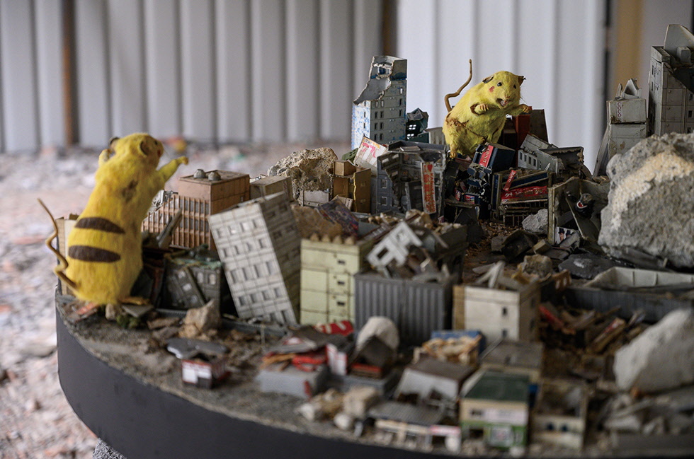 지난달 막을 내린 MOCA 타이베이의 전시는 미술관 앞마당에서부터 시선을 사로잡는 설치 작품으로 시작된다. 언뜻 평범한 고기잡이배처럼 보이는 두 척의 소형 어선이 거리를 두고 놓여 있는데, 하나는 2011년 봄 일본에서 일어난 지진과 쓰나미로 인해 대만의 한 해안가 마을로 떠밀려온 돛단배이고, 또 하나는 홍콩의 일명 ‘소환법(범죄인 인도법 개정안)’ 반대 시위를 상징하듯 색색의 메모지가 잔뜩 붙어 있는 작은 배다. 전자는 무자비한 자연의 파괴력을 보여주는 천재, 후자는 인간이 야기한 비극인 인재로 의미심장한 대비를 이루고 있다. 미술관 안으로 들어가면 일본, 중국 등 아시아는 물론이고 남미, 중동, 유럽 등 여러 지역에서 발발했던, 혹은 아직도 누군가의 가슴을 멍들게 하고 있는 각종 재난의 축소판이 다양한 모습으로 펼쳐진다. 베를린에서 활동하는 중국의 망명 작가 아이웨이웨이는 국제적인 난민 문제를 다룬 작품 5점을 선보였는데, 이 중에는 ‘오디세이(Odyssey)’처럼 시리아 난민을 상징적으로 다룬 디지털 프린트 작품도 있고, 글로벌 이주민들이 겪는 위험한 여정과 고통을 엮은 ‘휴먼 플로(Human Flow)’, ‘이도메니(Idomeni)’ 등의 영상 작품도 있다. 일본의 젊은 아티스트 그룹 침↑폼(Chim↑Pom)의 경우에는 지진이나 원전 사고 같은 처참한 재해, 그리고 도쿄올림픽으로 인한 도시 개발의 이면 등 다양한 사회문제를 다뤄왔는데, 이들의 대표작 ‘슈퍼 쥐’도 이번에 전시됐다. 자본주의의 욕망 속에서 엄청난 크기로 자란 돌연변이 쥐를 애니메이션 캐릭터 피카츄처럼 보이도록 칠한 작품이다. 타이베이에서는 ‘디스토피아’적인 도시 풍경을 예술 작품으로 볼 수 있는 또 다른 전시가 진행 중인데, 2016년 문을 연 복합 문화 공간 저트 아트 뮤지엄(Jut Art Museum)의 기획전 <Paradise Lost ? Gazing at Contemporary Urban Civilization and Its Metaphor>다. 존 밀턴의 대서사시 <실락원>에서 제목을 딴 이 전시는 인간의 야망이 빚어낸 문명의 변화무쌍한 면면을 날카로운 시각으로 조명한다(오는 4월 5일까지). 건축과 예술을 담는 것으로 유명한 이 공간은 전시장 입구에 놓인 검은 색조의 송전탑처럼 생긴 설치물부터 관람객의 눈길을 잡아끄는데, 일본 아티스트 이와사키 다카히로(Takahiro Iwasaki)의 ‘The Out of Disorder(Collapse)’라는 작품이다. 일본인들에게 처절한 충격을 안겨준 2011년의 후쿠시마 원전 사고를 소재로 오늘날 우리가 의존하는 에너지 공급 시스템이 얼마나 취약할 수 있는지를 담담하게 강조한다. 가공할 만한 첨단 기술을 지니고 있으면서도 여러모로 재난에서 벗어나지 못하는 인류의 미래상을 그려본 전시도 있다. 싱가포르의 아트사이언스 뮤지엄(ArtScience Museum)에서 열리고 있는 <2219: Futures Imagined>. 도시의 랜드마크이기도 한 마리나 베이 샌즈에 자리한 이 미술관은 이름처럼 미래 지향적인 콘텐츠로 잘 알려져 있다. 2백 년 뒤 세상을 배경으로 한 소설을 제목으로 차용한 이번 전시는 마치 연극의 1~5막처럼 서로 다른 소주제의 공간을 따라 ‘체험’할 수 있는 여정을 특유의 ‘디지털 센스’를 살려 짜임새 있게 만들었다. 지구온난화 등 기후변화의 파장으로 식량을 생산하는 공간까지 ‘실내’에 두는 미래의 집 안 풍경을 담은 작품 등 볼거리도, 생각할 거리도 많은 전시다.