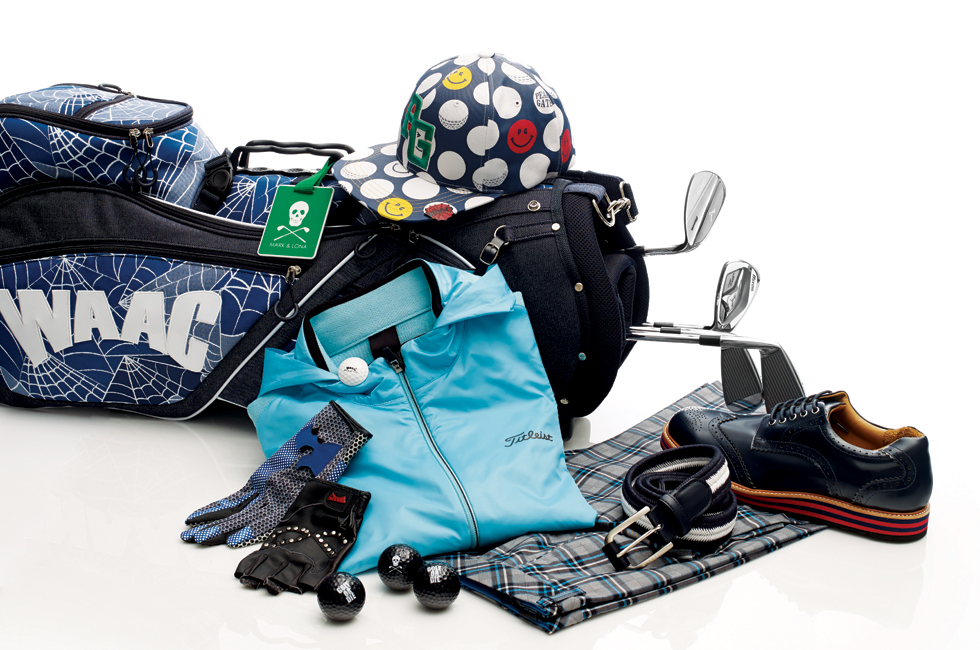 위트 있는 거미줄 모양의 볼 마커 3개입, 3만원 왁. 정확한 샷 컨트롤 능력과 비거리를 향상시킨 모델로, 보론강(boron steel)을 첨가해 페이스 강도를 향상시켜 부드러운 타구감을 선사하는 JPX850 포지드 아이언 1백만원대 미즈노. 레드 스트라이프의 러버솔이 감각적인 윙 팁 클래식 골프화 53만8천원 파리 게이츠. 탄력 있고 가벼운 소재의 코튼 벨트 14만원 엘로드. 면과 나일론을 혼합해 쾌적하고 부드러운 촉감을 선사하는 체크 팬츠 31만8천원 타이틀리스트. 강렬한 블랙 컬러의 스타워즈 한정판 골프공 7만9천원 마크앤로나. 바이커 장갑을 연상케 하는 스터드 장식이 유니크한 장갑 5만원, 배트맨 모티브의 벨크로 클로저가 돋보이는 장갑 3만8천원 모두 왁. 수분과 땀을 빠르게 흡수하고 뛰어난 단열 효과를 자랑해 플레이 시 최적의 컨디션을 제공하는 하늘색 후드 점퍼 39만8천원 타이틀리스트.