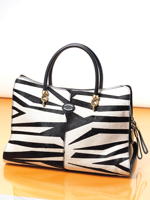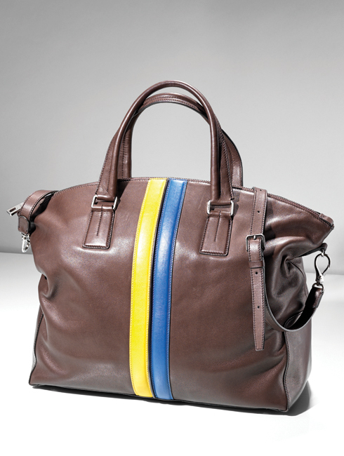고급스러운 윤기가 흐르는 송아지가죽의 더블 스트라이프 백은 데일리 백이나 위크엔드 트래블 백으로 두루두루 활용도가 높다. 스트라이프를 원하는 컬러로 선택해 맞춤 제작할 수 있다. 41X36cm 2백17만원.