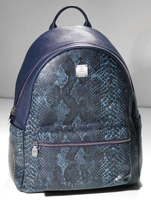 파이톤 스킨 패턴과 사이드의 스터드 장식으로 젊고 감각적인 스타일을 완성한 백팩. 지난 시즌보다 작고 심플한 스터드를 배열하고 가죽의 비중은 늘려 고급스러움을 더했다. 42X31.5cm 90만원대.