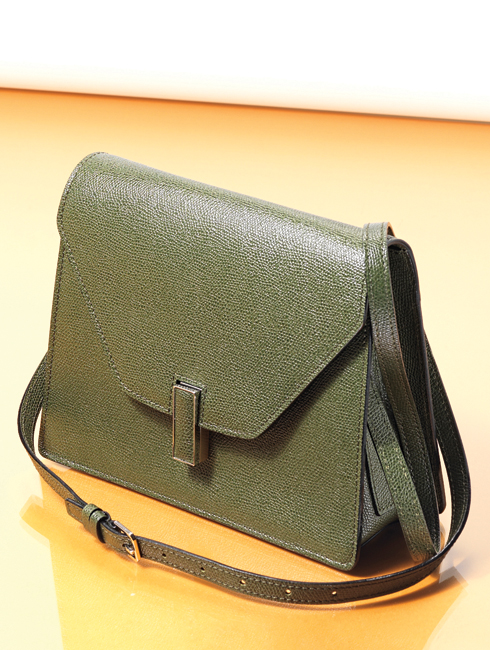 정제된 라인과 고급스러운 컬러, 심플한 메탈 장식이 돋보이는 이시스 컬렉션의 뉴 백. 미니멀한 형태에 탈착 가능한 숄더 스트랩을 더해 실용적으로 연출할 수 있다. 23X18cm 2백98만원.