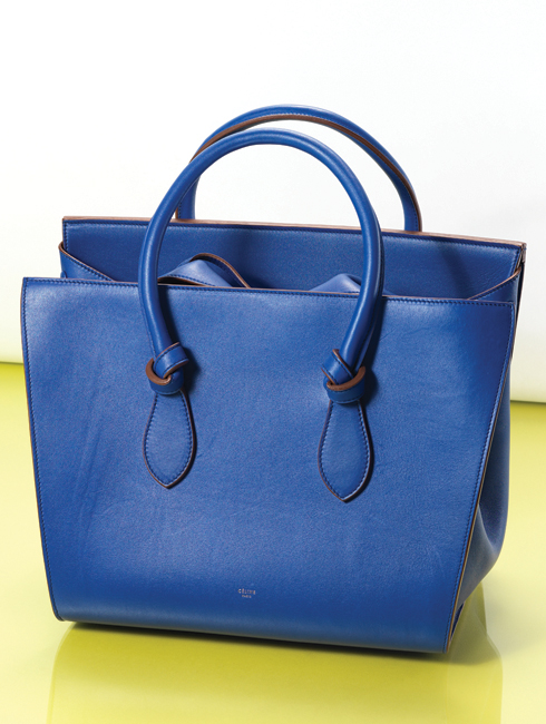 셀린 타이 백 사다리꼴을 뒤집은 듯 독특한 형태의 타이 백. 손잡이 부분의 매듭 장식과 잠금장치 없이도 자연스럽게 닫히는 커다란 플랩, 안쪽의 가죽 패널 등 셀린만의 독특한 디테일이 돋보인다. 31.5X29cm 4백80만원.