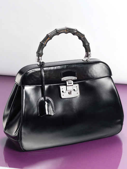 구찌의 아이코닉한 러기지 락과 동일한 스타일의 메탈 클로저, 대나무 핸들, 매끈한 형태가 돋보이는 백. 카프 스킨부터 파이톤, 오스트리치 등 이그조틱 레더까지 다양한 가죽으로 선보인다. 37X23cm 3백80만원대.