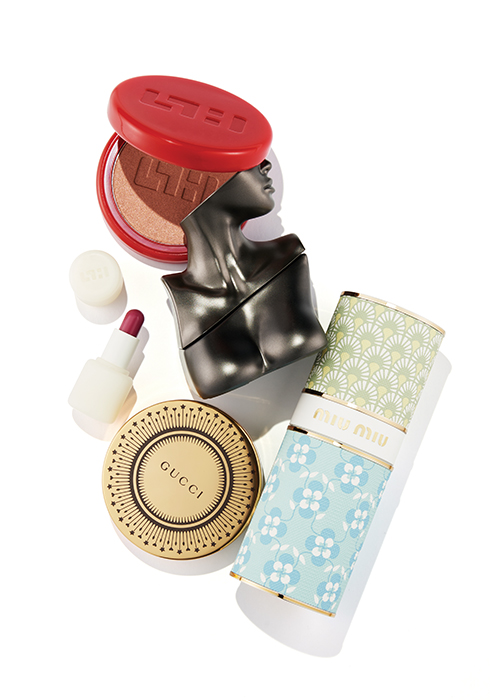 시미헤이즈 뷰티 선 위시 매트 브론징 파우더 크림처럼 블렌딩되는 파우더로 번들거리는 부분을 잡아주면서도 미세 펄 입자로 자연스럽고 은은한 광채 피부를 완성한다. 7g 6만1천원. 문의 02-591-5218 빌리 아일리시 아일리시 No.2 팝 스타 빌리 아일리시가 좋아하는 향조를 그대로 담아낸 향수로 센슈얼한 향과 어울리는 조각상 모양의 독특한 패키지가 인상적이다. 100ml 10만7천원. 문의 080-023-7007 미우미우 로스트 인 그레이스 오 드 뚜왈렛 내추럴 스프레이 생기 있고 프레시한 향을 선사하는 향수로 상하 케이스를 취향대로 선택해 조합 가능하다. 50ml 13만3천원, 상·하단 케이스 각 3만6천원. 문의 080-850-0708 구찌 뷰티 드 보떼 콰티오 서머리나 브라운 빈티지한 무드에서 영감받은 패턴의 골드 컬러 패키지가 매력적인 멀티유즈 제품 4개로 이루어진 메이크업 팔레트 콘셉트의 콤팩트. 6.1g 9만9천원. 문의 080-850-0708 시미헤이즈 뷰티 슈퍼 슬릭 립 밤 블라썸 로즈 오일을 함유해 진정 효과를 주는 동시에 미니 사이즈로 가지고 다니기에 좋은 립밤 1g 3만1천원. 문의 02-591-5218