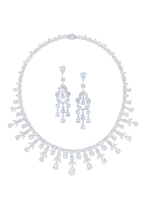4 그라프 ‘로터스 컬렉션(Lotus Collection)’ 이어링. 총 9.71캐럿의 다이아몬드를 사용했다. 5 섬세함과 은근한 화려함이 인상적인 그라프 ‘멀티셰이프 다이아몬드(Multishape Diamond)’ 목걸이.
