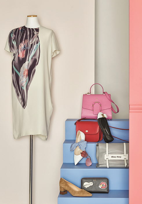 바리나 플랫 슈즈 75만원 살바토레 페라가모. 리본 장식 펌프스 1백10만원대 프라다. 핑크 렌즈 선글라스 20만원대 레이밴 by 룩소티카 코리아.