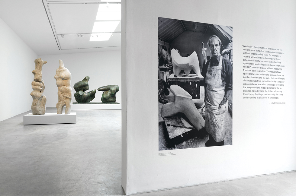 ‘하우저앤워스(Hauser & Wirth)’라는 세계적인 갤러리 브랜드로 인해 덩달아 유명세를 얻게 된 브루턴(Bruton). 인구가 약 3천 명에 지나지 않지만 특유의 아름다운 풍광과 미식으로 이미 자국민들에게는 은근한 사랑을 받아온 작고 한적한 마을이다. 지난 6월 초, 브루턴으로 향하는 길은 여럿이지만 필자는 런던 패딩턴 역에서 기차를 탔다. 시간대를 잘 고르면 한 번만 갈아타고 2시간 내에 브루턴 역에 도착한다. 그리고 무거운 짐만 없다면 기차역에서 도보로 10분 정도면 하우저앤워스 서머싯에 다다를 수 있다. 친절하게 놓인 팻말을 따라 걷노라면 동화 같은 마을 풍경을 배경으로 초여름의 싱그러운 녹음으로 빛나는 산울타리가 길게 펼쳐진 산책길이 나온다. 이윽고 풀밭 위로 옹기종기 모여 있는 ‘예술 농장’의 자태가 드러난다. 실제로 하우저앤워스 서머싯이 자리 잡은 땅은 18세기 중엽에 지은 더슬레이드 농장(Durslade Farm) 부지로 쥘리에트 비노슈와 조니 뎁 주연의 영화 <초콜릿> 촬영 장소로 쓰이기도 했다. 마침 주말인 데다 새로운 전시가 막을 올린 지 얼마 되지 않은 터라 꽤 북적거렸다. 영국이 낳은 추상 조각의 선구자로 여겨지는 헨리 무어(1898~1986) 전시 <Henry Moore. Sharing Form>.