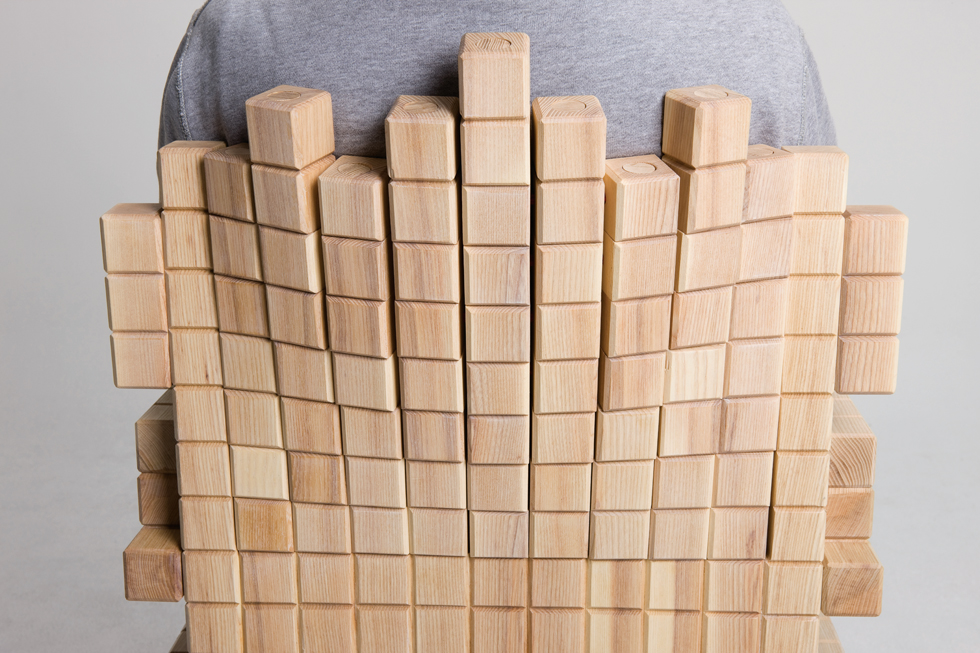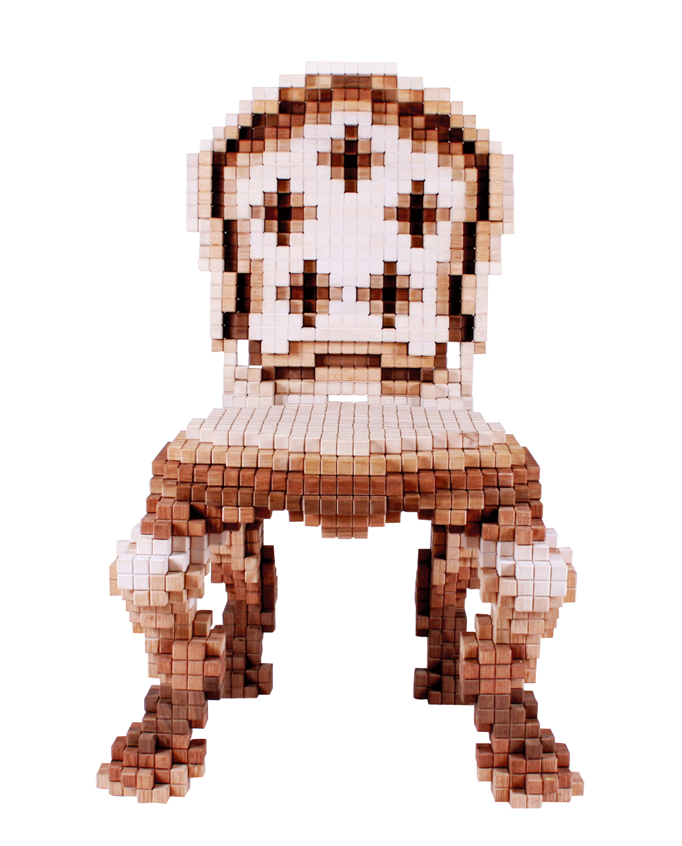 5 김정희 작가의 ‘픽셀 체어’는 단풍나무, 호두나무 등 컬러가 다른 나무들이 픽셀을 이루어 완성된 작품이다.