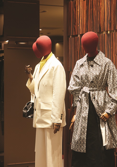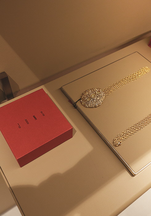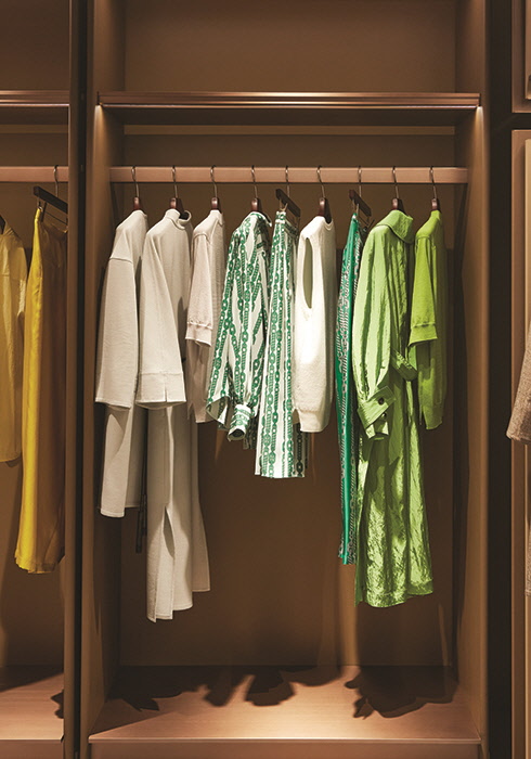 매장 인테리어는 브랜드의 아이덴티티를 그대로 느낄 수 있도록 전면에 가죽 위빙과 마호가니나무를 입체적으로 활용했다. 들어서는 순간 마치 럭셔리한 타운하우스 혹은 부티크에 초대받은 듯한 느낌이 든다. 고급스러운 라운지와 피팅 룸은 존스만의 독보적인 프리미엄 감성이 살아 있는 공간으로, 특유의 타임리스 클래식 무드와 잘 어울린다. 매장 디스플레이는 라인이 아니라 다섯 가지 컬러로 구분해 소비자가 선호하는 컬러 칩을 쉽게 찾을 수 있도록 구성했다. 오픈 첫날임에도 독보적인 아름다움을 발산하는 분위기에 이끌려 존스 매장을 찾는 손님들이 줄을 이었다. 존스의 아이덴티티 컬러인 강렬한 버건디와 짙은 브라운은 매장에 무게감과 우아함을 동시에 선사한다. 소파와 테이블 등 가구의 부드러운 곡선은 존스의 정체성을 대변하고, 매장에 들어서서 고유의 무드를 느끼고 존스의 옷을 걸치는 순간 브랜드가 창조한 페르소나를 덧입게 된다. 컬렉션은 물론 매장 인테리어에도 시간이 흘러도 변치 않는, 모든 세대가 한 번쯤 갈망하는 프리미엄 브랜드를 향한 정구호 크리에이티브 디렉터의 고민이 녹아 있다. 존스가 밟아나갈 완성도 높은 브랜드로의 여정이 기대되는 이유다. 문의 신세계백화점 강남점 02-3479-1321