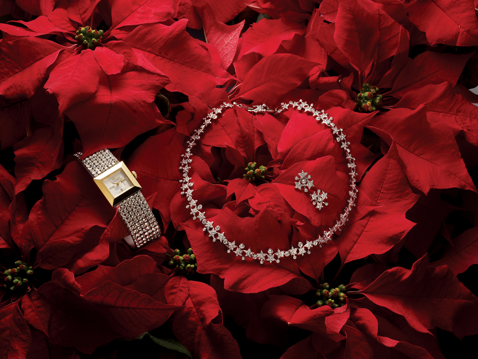 해마다 크리스마스 에디션을 선보이는 스와로브스키에서 2010년 크리스마스 에디션으로 선보인 메리 세트. 섬세한 별 무리가 눈 꽃송이를 이룬 디자인으로, 네크리스와 이어링이 한 세트로 구성되어 있다. 36만원. 모두 스와로브스키. 문의 02-3395-9096