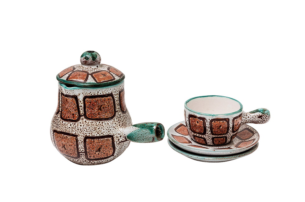 1 차분한 색감이 돋보이는 티폿 7만원, 잔과 소서 세트 3만8천원.