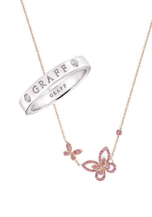 그라프에서 ‘I WISH’ 캠페인 론칭과 함께 소중한 사람을 위한 기프트 스페셜 에디션을 공개한다. 먼저 18K 로즈 골드 버터플라이 실루엣 파베 핑크 사파이어 펜던트. 오랫동안 하우스의 상징적인 모티브로 활용되었던 나비가 우아하면서도 사랑스러운 핑크 사파이어를 만나 그라프만의 특별함과 아름다운 모먼트를 선사한다. 특히 펜던트에는 유려한 두 마리 나비의 날갯짓으로 아름다움을 배가해 그녀를 위한 로맨틱한 선물로 제격이다. 더불어 남성을 위한 선물로 18K 화이트 골드 소재의 그라프 이터니티 링을 제안한다. 아이코닉한 그라프 로고를 심플하게 새겨 넣고 2개의 다이아몬드로 디테일을 완성해 클래식하면서도 섬세하고 대담한 감성을 전한다. 문의 02-2256-6810