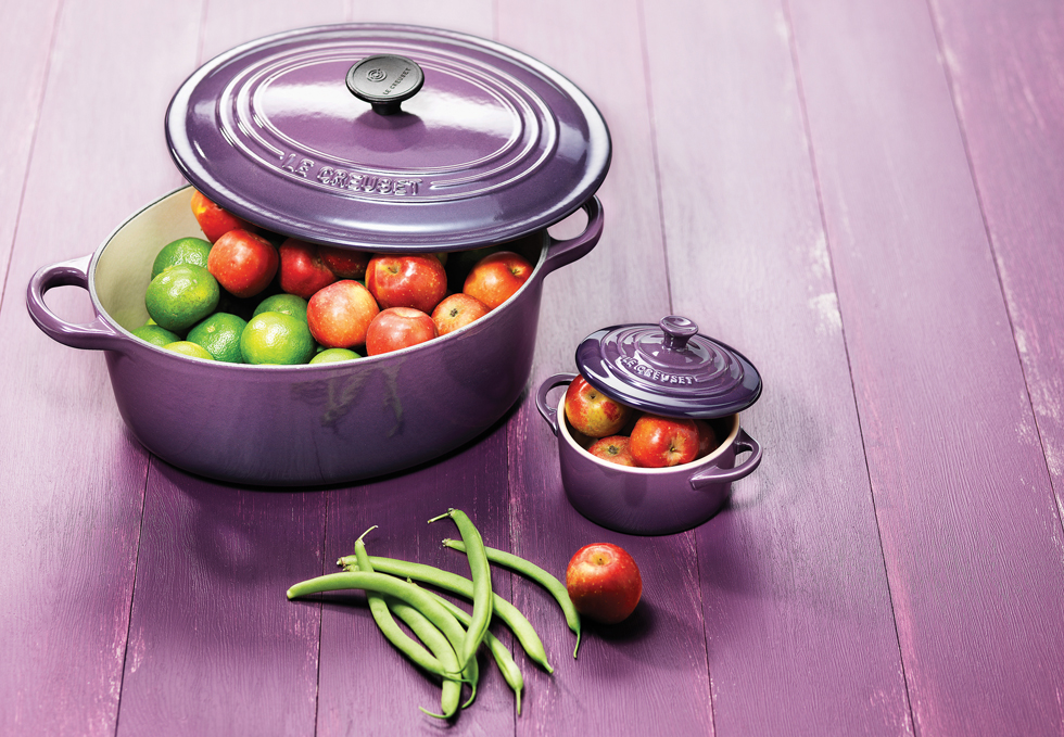 주방에 빈티지한 느낌을 더하고 싶다면 어두운 바이올렛 컬러인 카시스가 딱이다. 밝은 계열의 주방용품과 함께 두면 고급스러운 느낌을 더하고, 어떤 컬러의 요리를 담아도 유러피언의 느낌을 낼 수 있다. 이렇게 예쁜 컬러가 소유욕을 자극하는 것도 사실이지만, 마니아들이 르크루제를 계속해서 구매하는 것은 무엇보다 맛있는 요리를 할 수 있다는 점 때문이다. 무쇠 소재이기에 열전도성과 열보유력이 뛰어나 중간 불에 요리를 해도 완벽한 맛을 끌어낼 수 있고 식사를 마칠 때까지 요리가 식지 않는 것도 장점이다. 반짝이는 에나멜 표면도 단지 멋을 내기 위해서가 아닌 완벽한 위생을 위한 장치다. 요리 연구가들이 압력솥에 한 밥보다 르크루제 냄비로 만든 쌀밥이 더 맛있다고 할 정도로 한국 음식을 만드는 데도 적합하고, 매일 사용하는 실용적인 냄비로서의 기능도 뛰어나다.