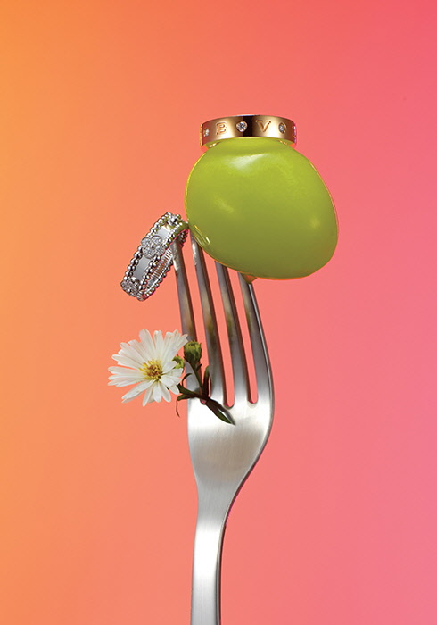 (오른쪽) 불가리 불가리 불가리 로만 소르베 링 18K 로즈 골드 밴드에 다이아몬드 7개, 총 0.2캐럿을 매치했으며, 더블 불가리 로고 장식에 바탕을 둔 심플하고 상징적인 디자인이 모던한 매력을 전한다. 3백만원대. 문의 02-2056-0171