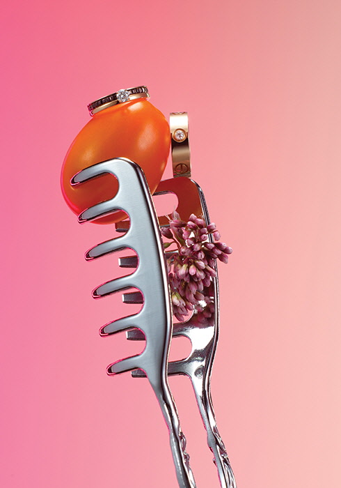 (오른쪽) 까르띠에 러브 링 그래픽적인 스크루와 부드러운 타원형 디자인으로 우아한 매력을 자아내는 링. 관습에서 벗어나고 시간을 초월한 열정적인 사랑의 상징이다. 다이아몬드 장식과 옐로 골드로 이뤄졌다. 4백80만원. 문의 1566-7277