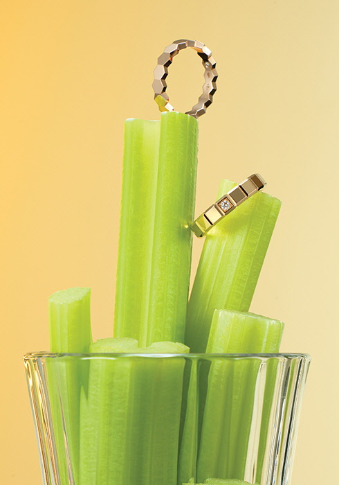 (오른쪽) 쇼파드 아이스 큐브 링 작은 얼음 조각을 이어 붙인 듯 기하학적이고 모던한 밴드 디자인에 1개의 작은 다이아몬드를 포인트로 세팅해 절제된 광채를 표현했다. 2백21만원. 문의 02-6905-3390