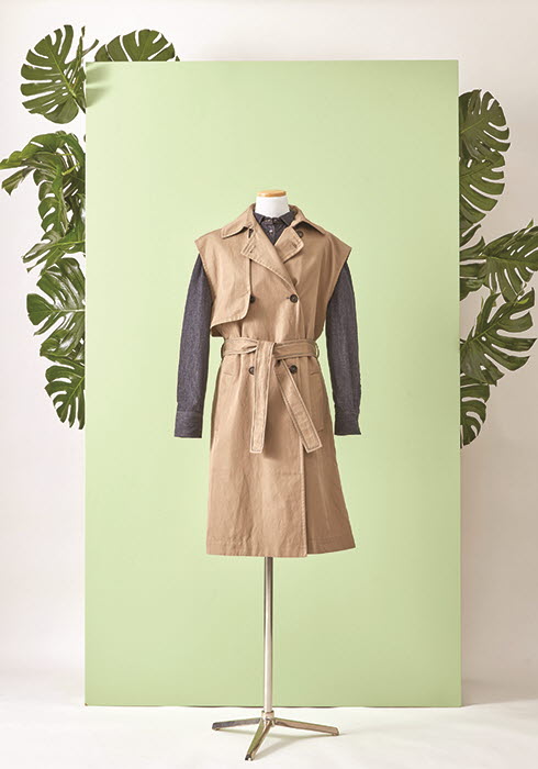 세련되고 우아한 디자인과 경쾌한 길이로 어떤 체형이든 멋스럽게 어울릴 트렌치코트. 면과 리넨으로 제작해 가볍고, 얇은 가죽 스트랩으로 강조한 스트링 형태의 허리 라인이 볼륨감 있는 실루엣을 선사한다. 2백78만원 파비아나 필리피.