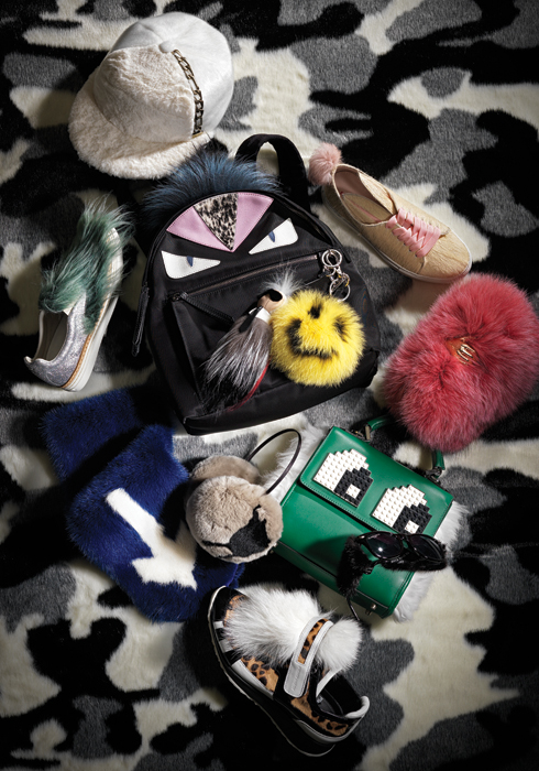 화이트 퍼와 체인 장식으로 포인트를 준 모자 53만원 스테판 존스 by 10 꼬르소 꼬모. 익살맞은 몬스터의 얼굴을 위트 있게 표현한 폭스 퍼 장식의 백 벅스 백팩 28X33cm 2백99만원, 칼 라거펠트를 형상화한 미니 칼리토 참 1백36만원, 옐로 컬러의 스마일 폼폼 79만원 모두 펜디. 앙증맞은 토끼의 꼬리와 귀 디테일이 유니크한 버니 스니커즈 53만5천원 미나 패리카 by 톰 그레이하운드. 손이 클러치를 움켜잡고 있는 듯한 모습의 폭스 퍼 클러치. 18X11cm, 1백59만원 베네데타 브루치케스 by 톰 그레이하운드. 블록으로 장식한 귀여운 눈 모티브와 토끼털로 포인트를 준 독특한 핸드백. 21X19cm, 1백50만원대 레뻬띠주 by 꼬르뽀. 밍크 장식을 더한 선글라스 60만원대 온 오라뚜 브 by 블러쉬. 화이트 퍼 장식의 레오퍼드 패턴 스니커즈 1백35만원 피에르 아르디. 프린트를 더한 베이지 토끼털 귀마개 16만8천원 톰 그레이하운드. 화살표로 포인트를 준 블루 밍크 머플러 1백99만원 안야 힌드마치 by 마이분. 거칠고 화려하게 표현한 퍼와 반짝이는 글리터가 돋보이는 슬립온 73만원 마틴 마르지엘라 by 마이분.