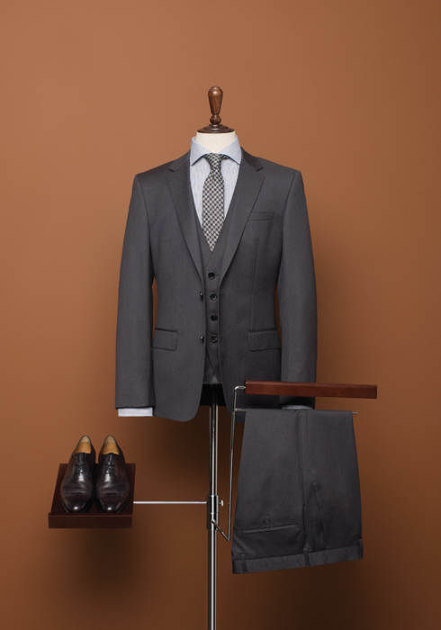 동일한 소재의 재킷, 베스트, 팬츠를 모두 갖춘 스리피스 수트 룩은 준예복의 성격을 띤다. 지나치게 포멀하고 클래식한 분위기를 커버할 경쾌한 패턴의 셔츠나 타이 등을 함께 매치하면 한층 감각적인 스타일을 완성할 수 있다.