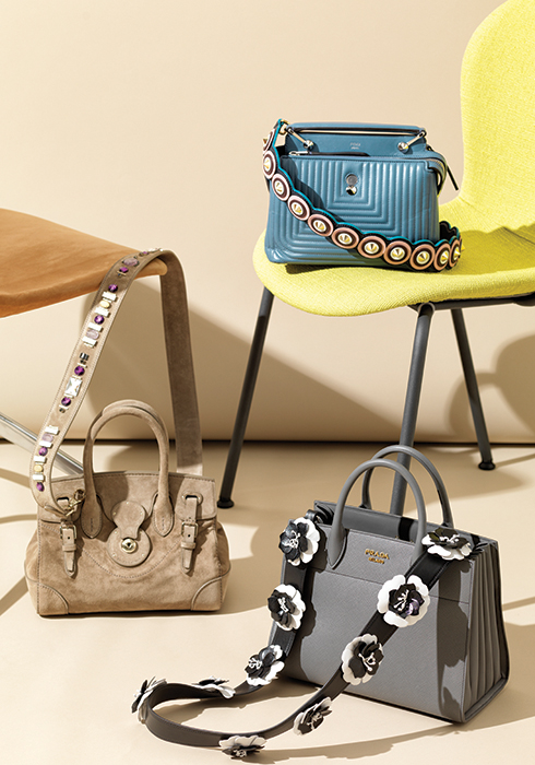 랄프로렌 소프트 리키 백 랄프로렌의 상징적인 가방 니키 백을 보다 부드러운 셰이프로 재해석한 가방으로, 이탈리아산 스웨이드 소재와 주얼 장식의 스트랩을 더해 더욱 세련되고 트렌디한 모습으로 선보인다. 26X20cm 2백65만원, 스트랩 1백80만원. 문의 02-545-8200