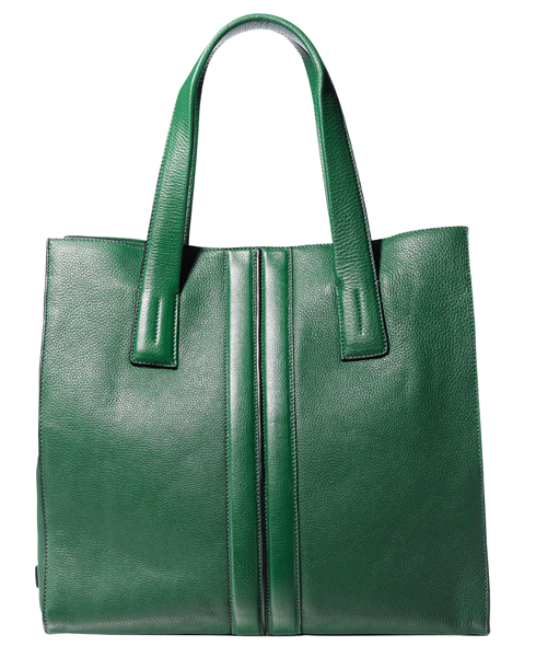 그린 컬러의 더블 스트라이프 컬렉션 백. 37X34cm, 1백57만원 토즈.