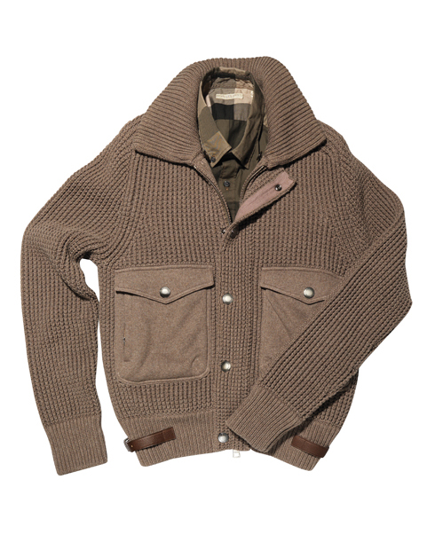가죽 디테일이 세련된 니트 아우터 1백20만원, 체크 패턴 셔츠 42만원 모두 버버리 브릿.