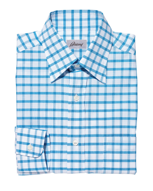 경쾌한 블루 체크 패턴의 셔츠 78만원 브리오니.