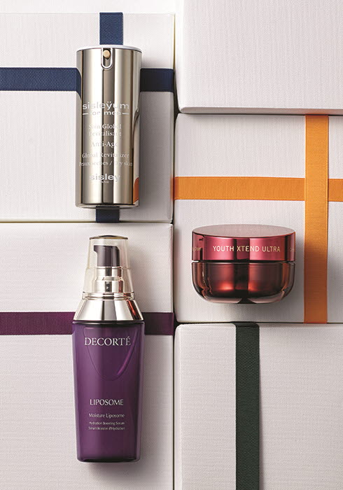 데코르테 모이스처 리포솜 홀리데이 리미티드 에디션 브랜드의 베스트셀러 제품으로, 피부 친화력이 뛰어난 인지질 성분의 다중층 리포솜이 수분과 영양을 피부 깊숙이 전달해 촉촉함을 오랫동안 유지시키는 퍼스트 에센스. 85ml 19만5천원. 문의 080-568-3111