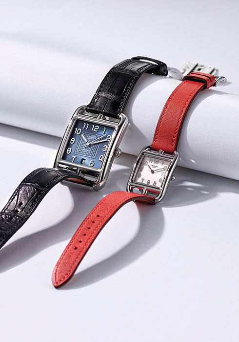 (왼쪽부터 차례대로) 둥그런 커브와 특이한 러그 모양으로 오랜 시간 에르메스 메종의 주요 라인 중 하나로 선보여온 케이프 코드 컬렉션. 인하우스 무브먼트인 H1912를 장착했으며, 투명한 크리스털 백 케이스를 통해 섬세하고 아름다운 무브먼트의 마감과 움직임을 감상할 수 있다. 케이프 코드 TGM 오토매틱 남성 오토매틱 워치 7백만원대, 스트랩을 쉽게 교체할 수 있도록 인터체인저블 스트랩을 더해 다양한 스타일을 연출할 수 있는 케이프 코드 PM 여성 쿼츠 워치 3백만원대 모두 에르메스. 문의 02-3015-3283 |
