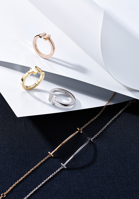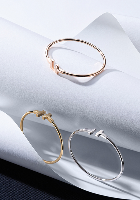 티파니의 알파벳 이니셜 ‘T’가 대칭을 이루는 구조적인 디자인이 돋보이는 티파니 T 와이어 브레이슬릿 18K 로즈 골드, 18K 옐로 골드, 18K 화이트 골드 각 2백30만원대 티파니. 문의 02-547-9422