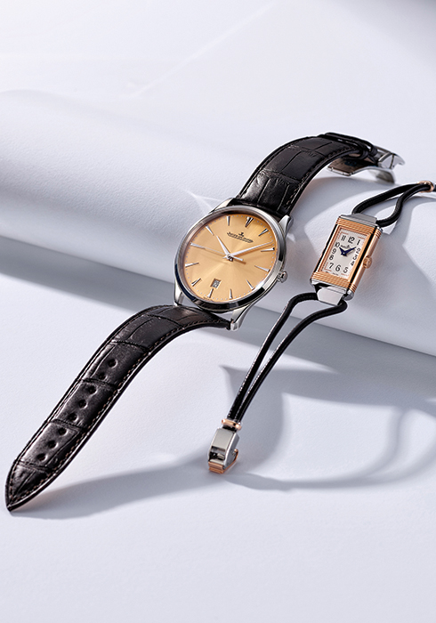 (왼쪽부터) 클래식한 디자인으로 꾸준한 사랑을 받고 있는 마스터 울트라 씬 데이트 남성 오토매틱 워치. 우아한 샴페인 컬러의 다이얼, 그리고 그 위에 6시 방향의 날짜 표시창과 섬세하게 디자인한 인덱스를 세팅했으며 백 케이스를 통해 칼리버 899/1을 감상할 수 있다. 9백65만원. 1936년 예거 르쿨트르의 빈티지 워치에서 영감을 받은 모델로, 당시의 곡선형 아리비아숫자와 도피네 핸즈를 그대로 재현한 리베르소 원 코르도네 여성 쿼츠 워치 9백80만원 모두 예거 르쿨트르. 문의 02-3449-5912 |
