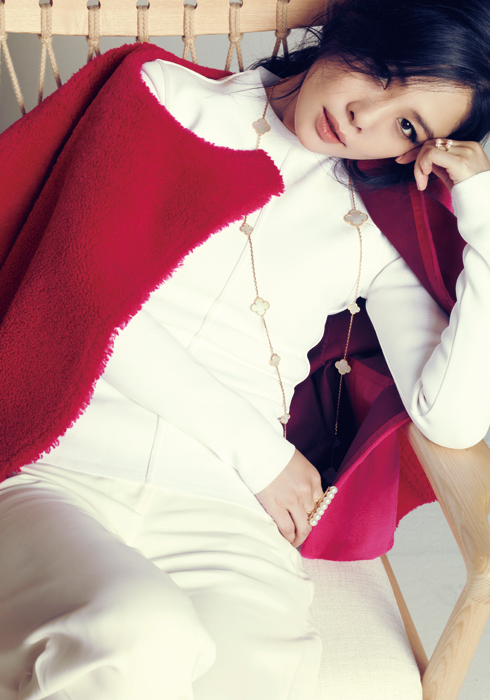 보디라인을 타고 흐르는 여성스러운 실루엣과 고전적인 레이디라이크 룩, 구조적인 형태의 아우터. 내추럴한 아름다움이 사랑스러운 배우 김현주가 펼치는 우아한 순간.