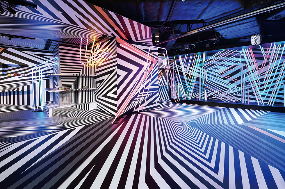4 강렬한 줄무늬 패턴이 착시 현상을 일으키며 상업적인 공간을 현대미술이 접목된 멋진 전시 공간으로 변신시켰다